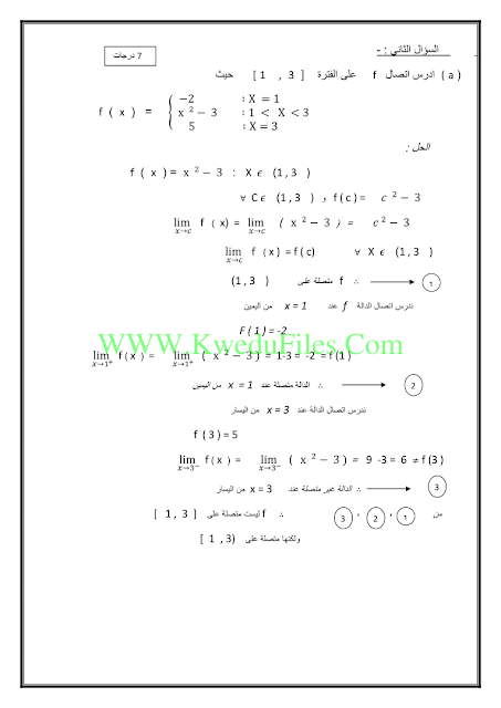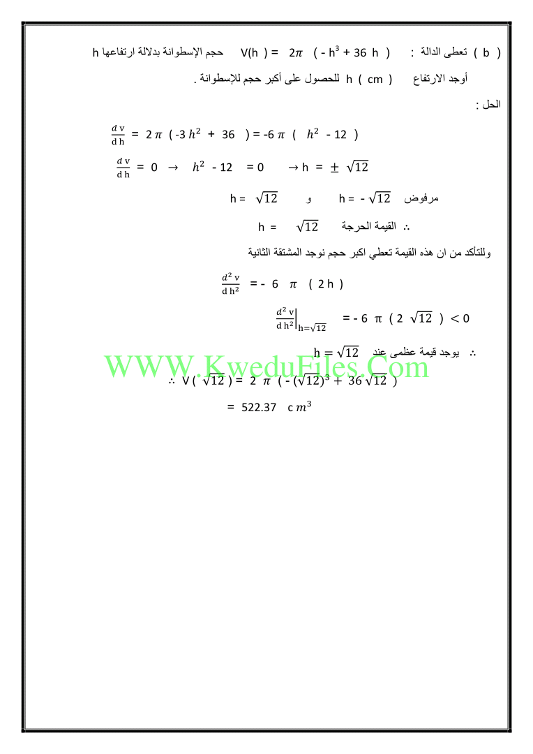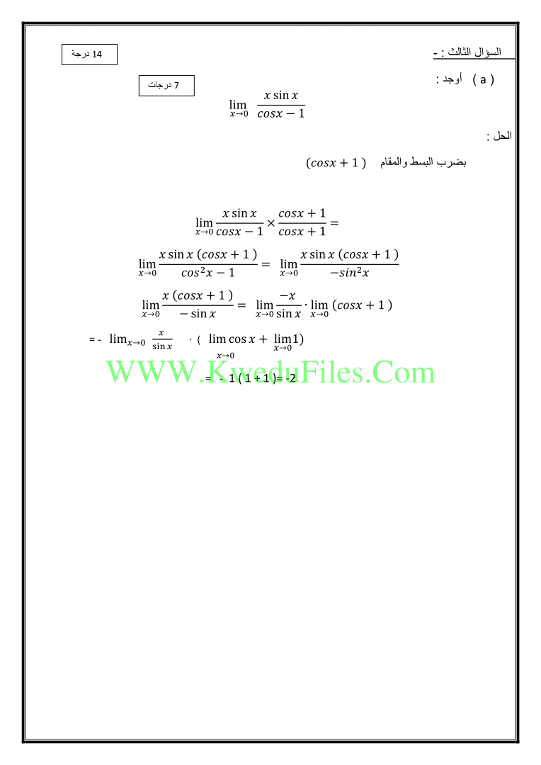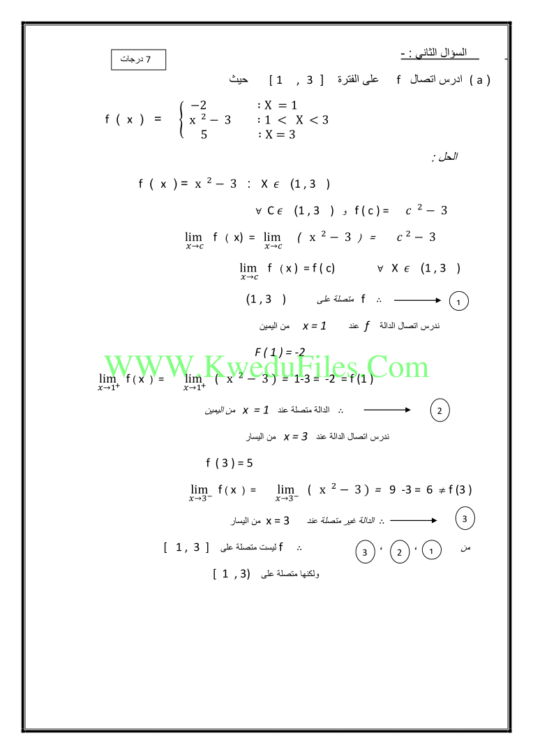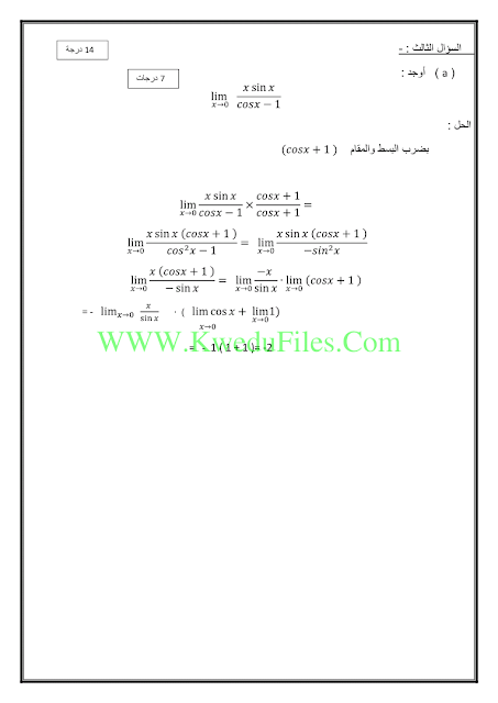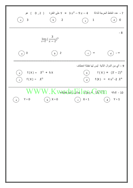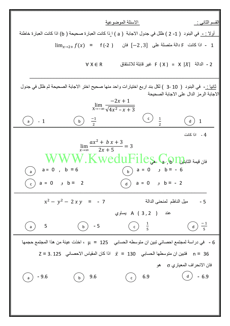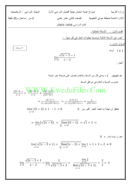 معلومات الملف: نموذج اجابة اختبار مادة الرياضيات للصف الثاني عشر العلمي للكورس الاول | ||