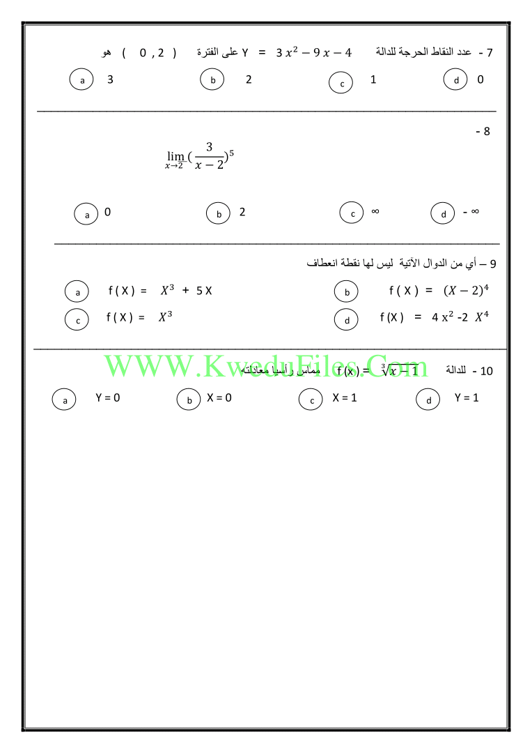 أنت هنا: موقع المناهج ⇦ المناهج الكويتية ⇦ الصف الثاني عشر العلمي ⇦ رياضيات ⇦ الفصل الأول ⇦ حلول |