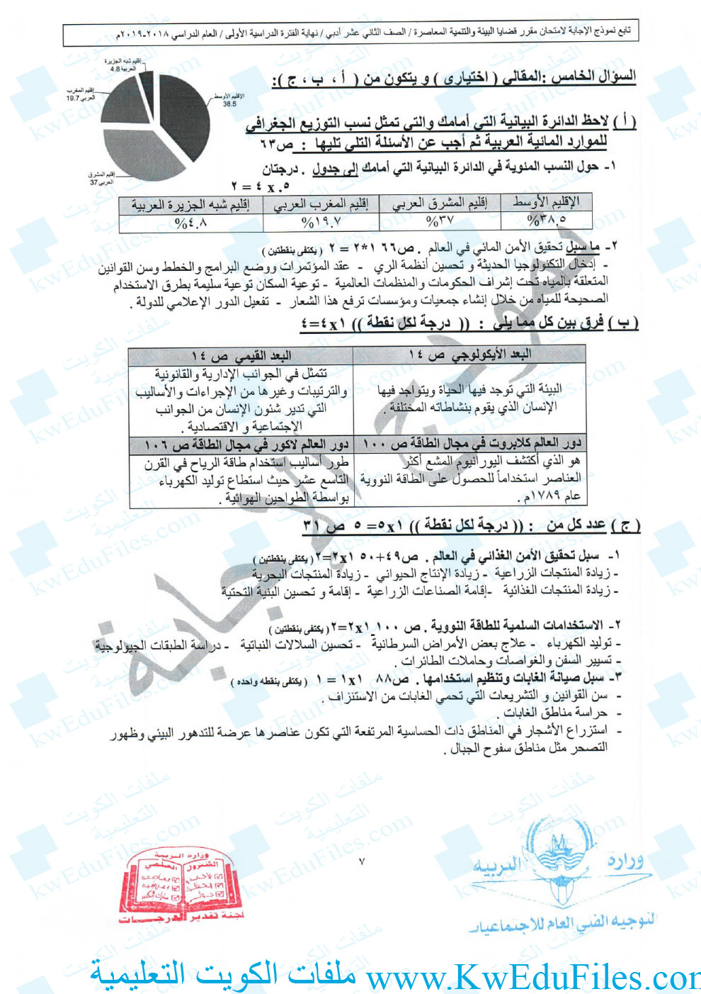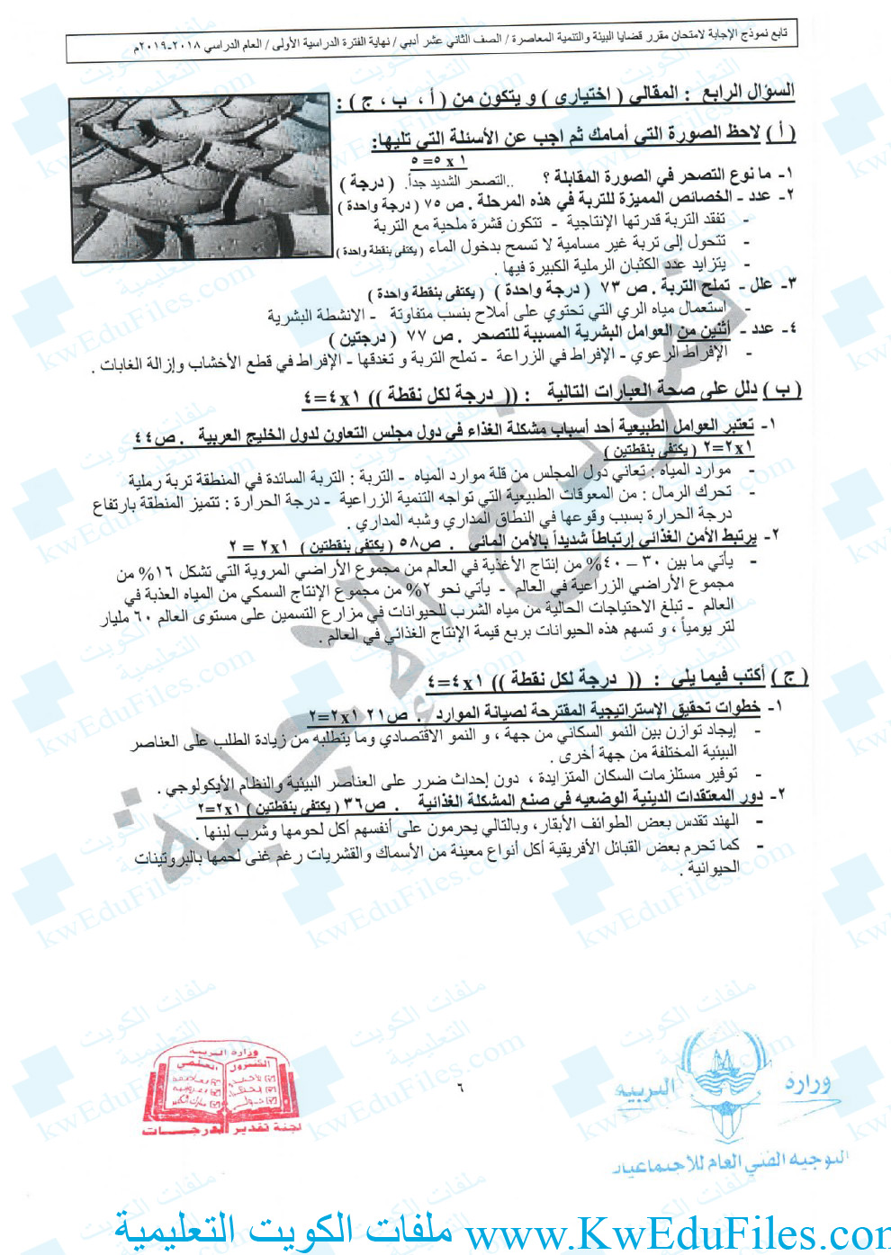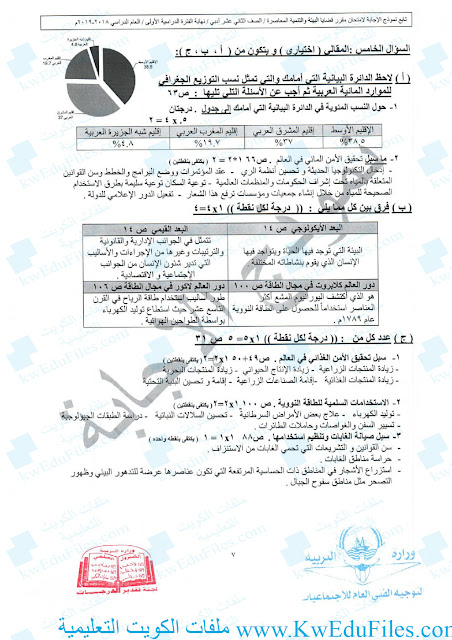 معلومات الملف: نموذج اجابة 20182019 الفصل الاول - وفق المنهاج الكويتي | ||