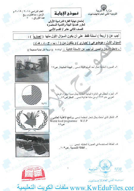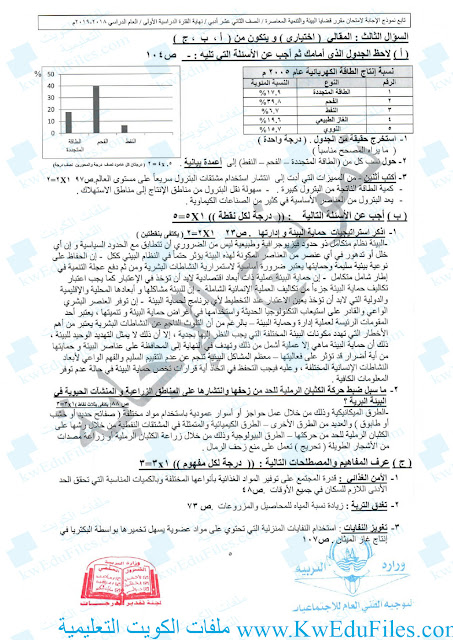 3. نموذج الإجابة المعتمد من التوجيه الفني العام
