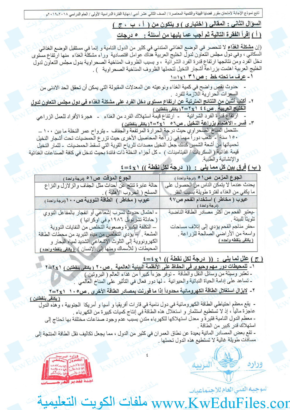 تم إيجاد الملف: نموذج اجابة 2018