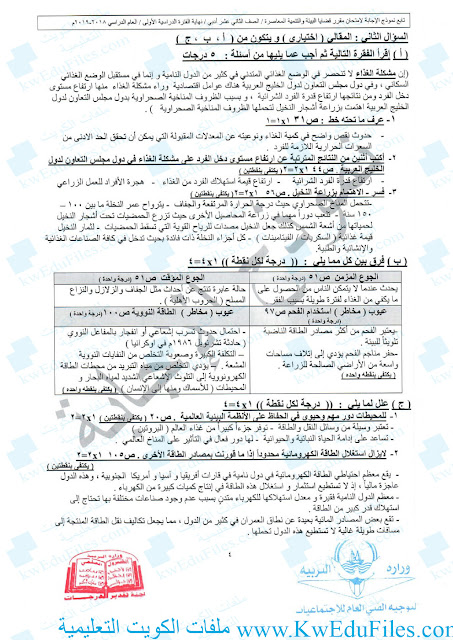 نموذج اجابة 2018 - إعداد: التوجيه الفني العام للاجتماعيات