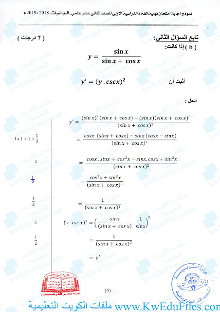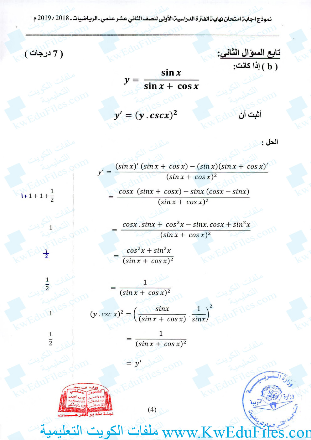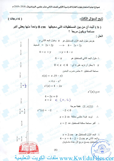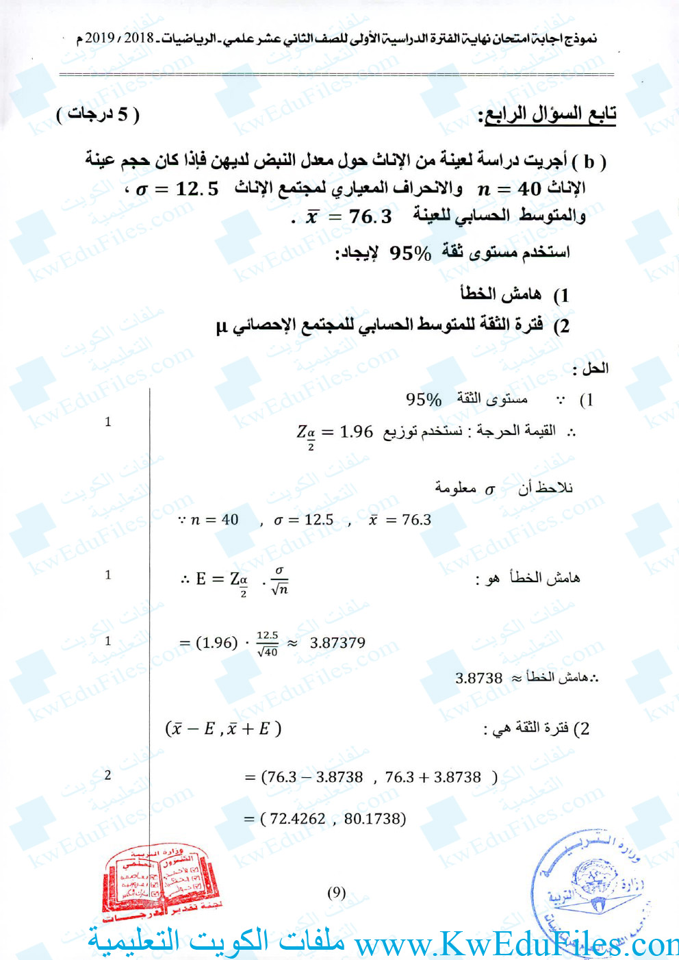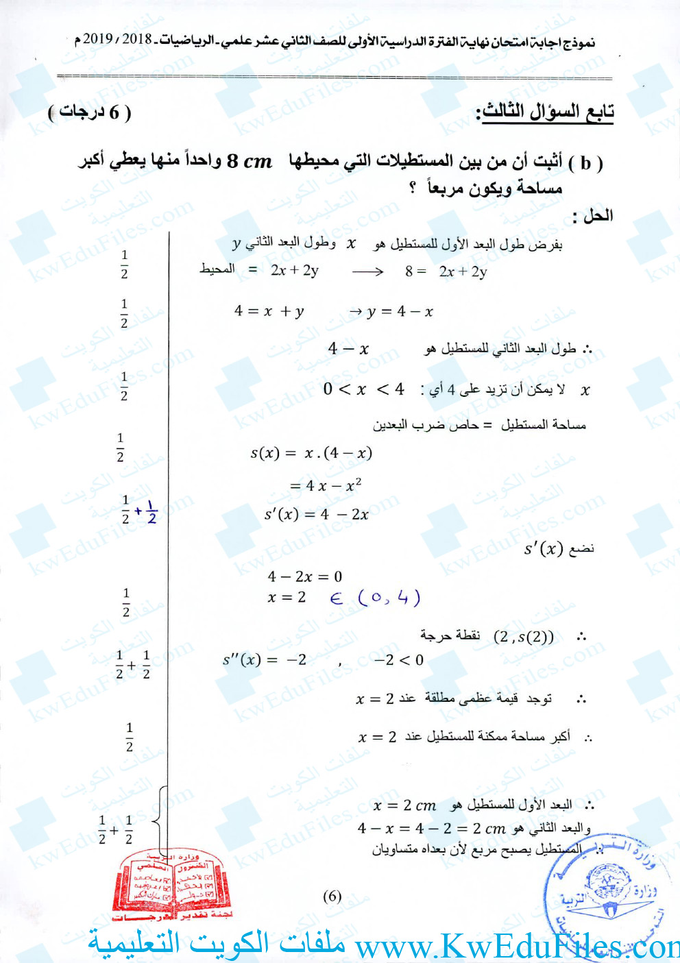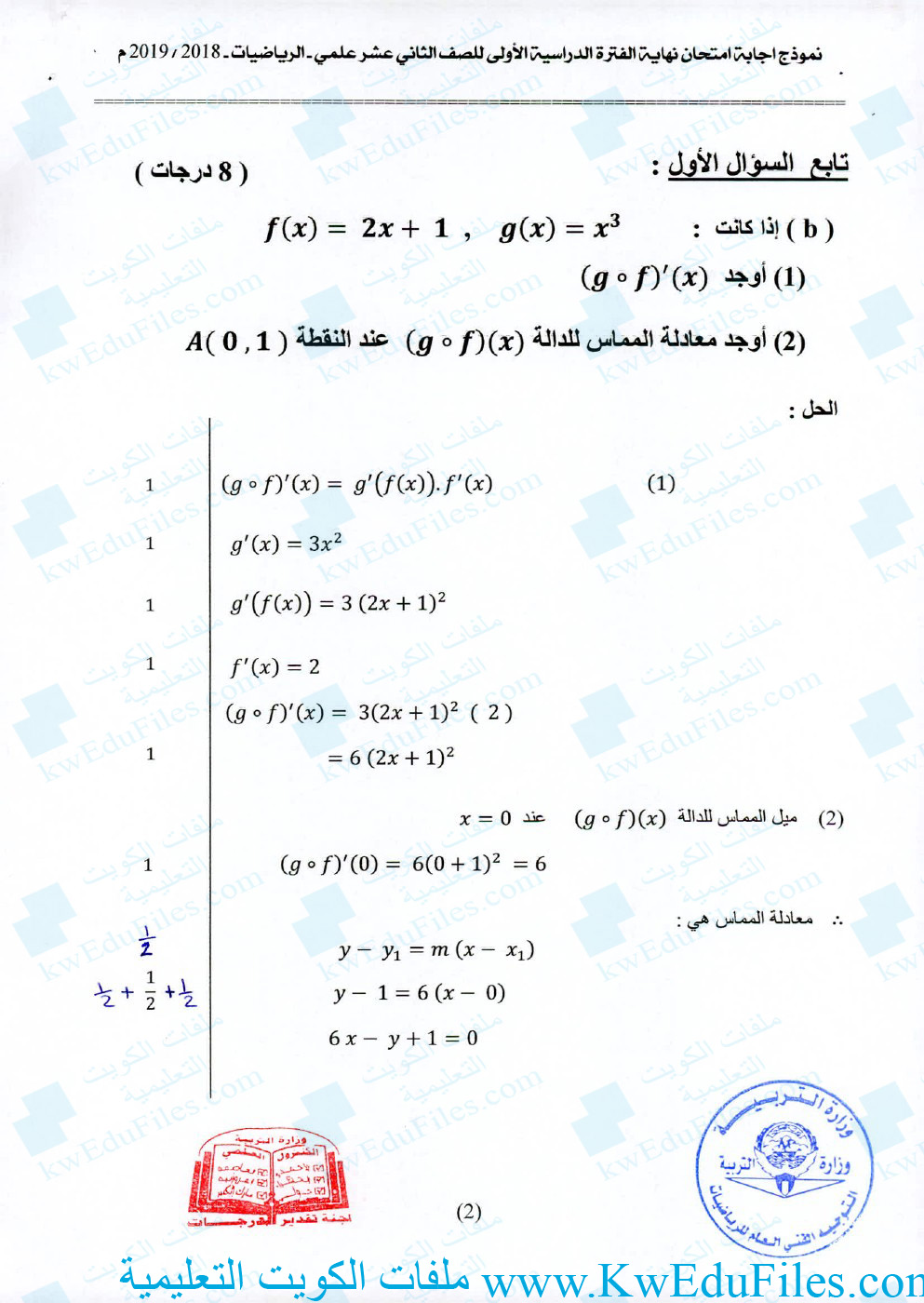 نموذج اجابة 2018 - إعداد: التوجيه الفني العام للرياضيات