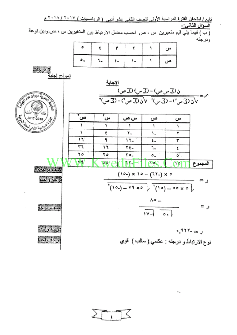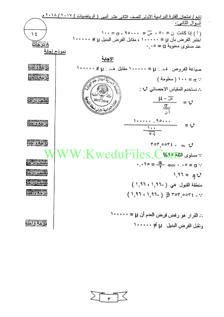 أنت هنا: موقع المناهجالمناهج الكويتية الصف الثاني عشر الأدبي إحصاء الفصل الأول الامتحان النهائي