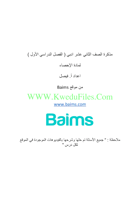 أنت هنا: موقع المناهجالمناهج الكويتية الصف الثاني عشر الأدبي إحصاء الفصل الأول مذكرات وبنوك