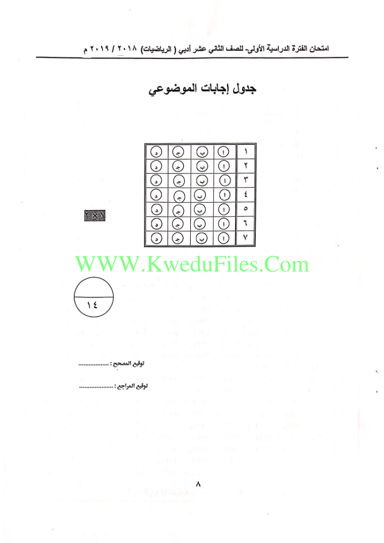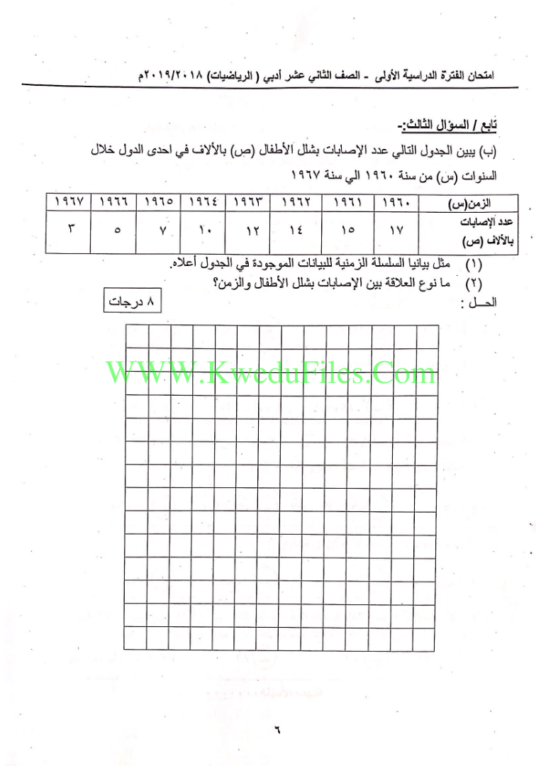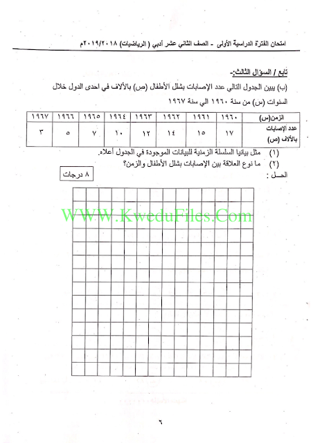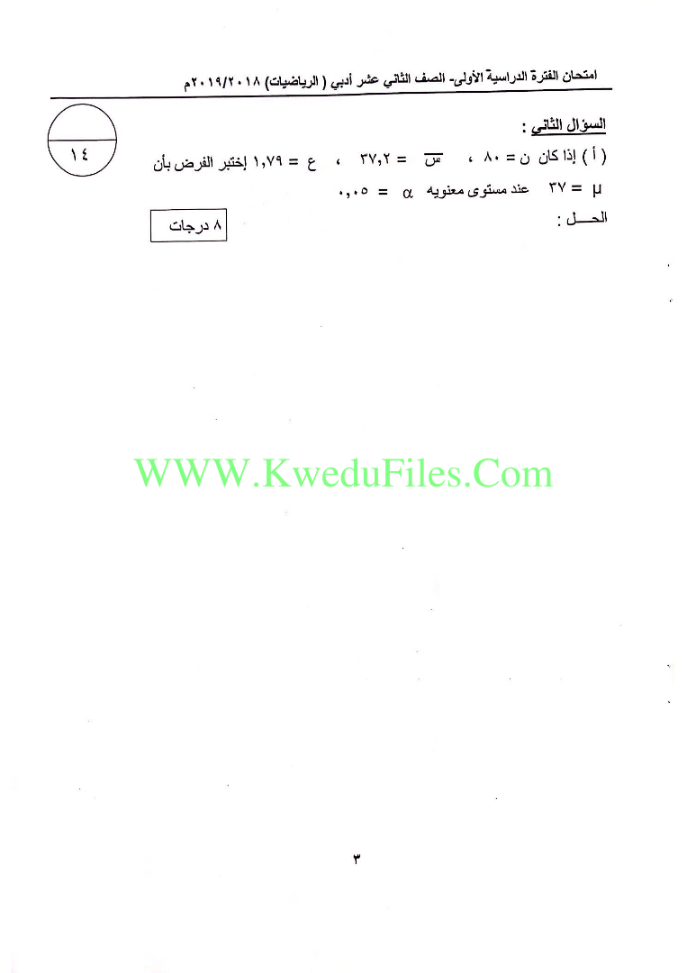 نموذج اسئلة اختبار 2018/2019في مادة الاحصاء للصف الثاني عشر الادبي للكورس الاول