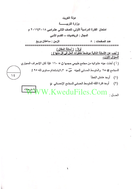 أنت هنا: موقع المناهجالمناهج الكويتية الصف الثاني عشر الأدبي إحصاء الفصل الأول الامتحان النهائي