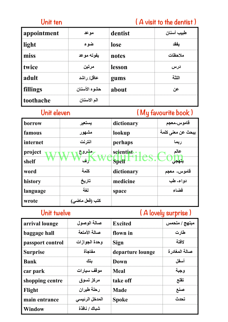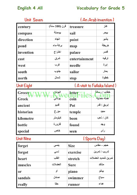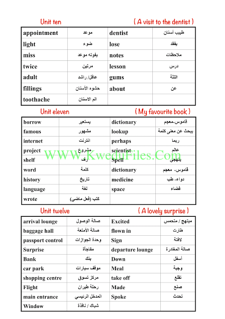 معلومات الملف: 3اوراق في مادة اللغة الانكليزية للصف الخامس تتضمن اهم تصريفات الافعال ومعاني كلمات الكورس الثاني | ||