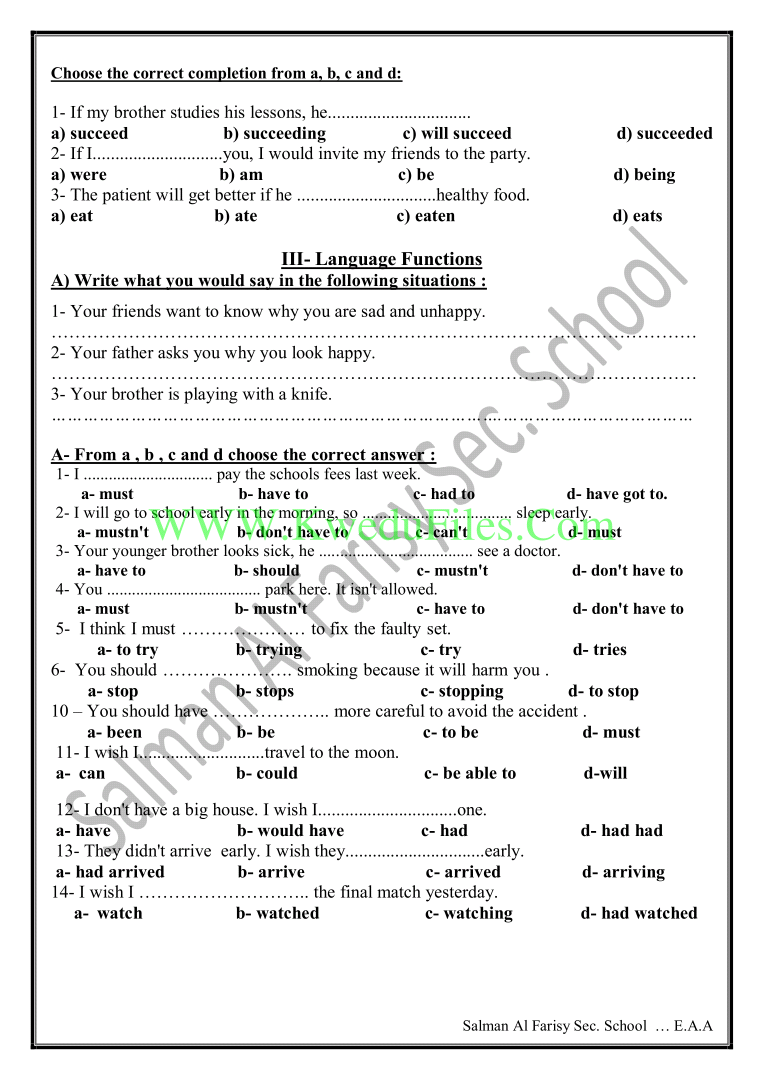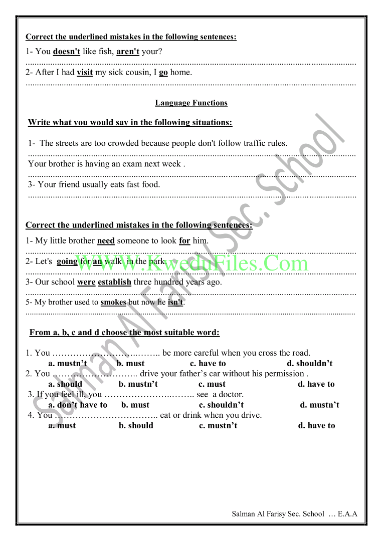 8. لغة انجليزية, الفصل الأول, 2025-2026, مراجعة شاملة لقواعد المنهج
