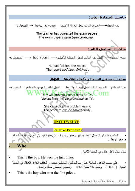 اهم قواعد الكورس الثاني - إعداد: ثانوية سلمان الفارسي
