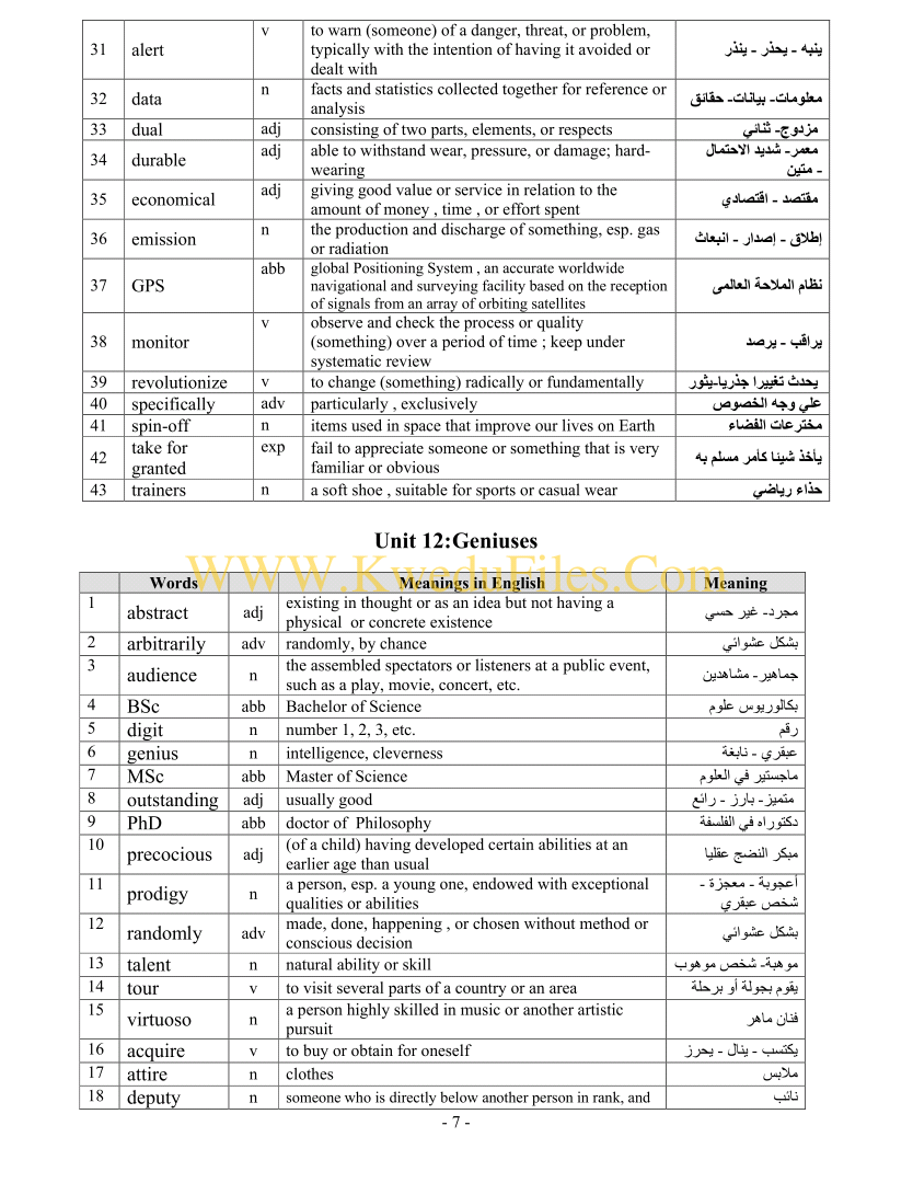 معلومات الملف: 8اوراق في مادة اللغة الانكليزية للصف الثاني عشر للكورس الثاني تتضمن معاني كلمات الكورس الثاني | ||