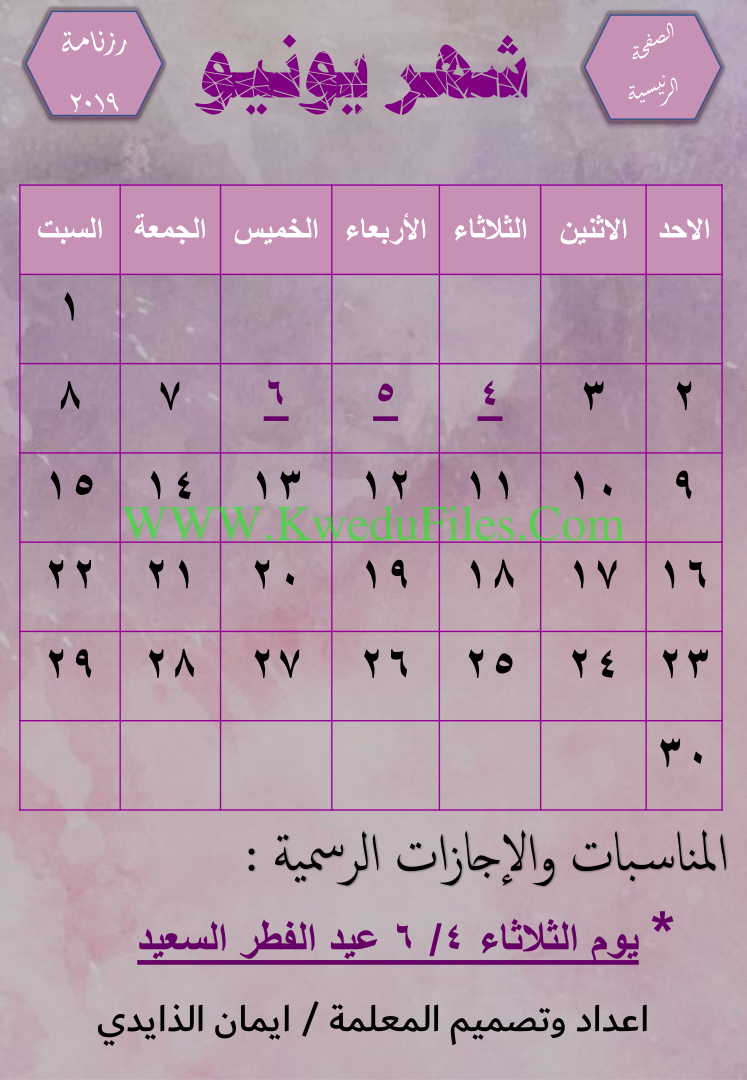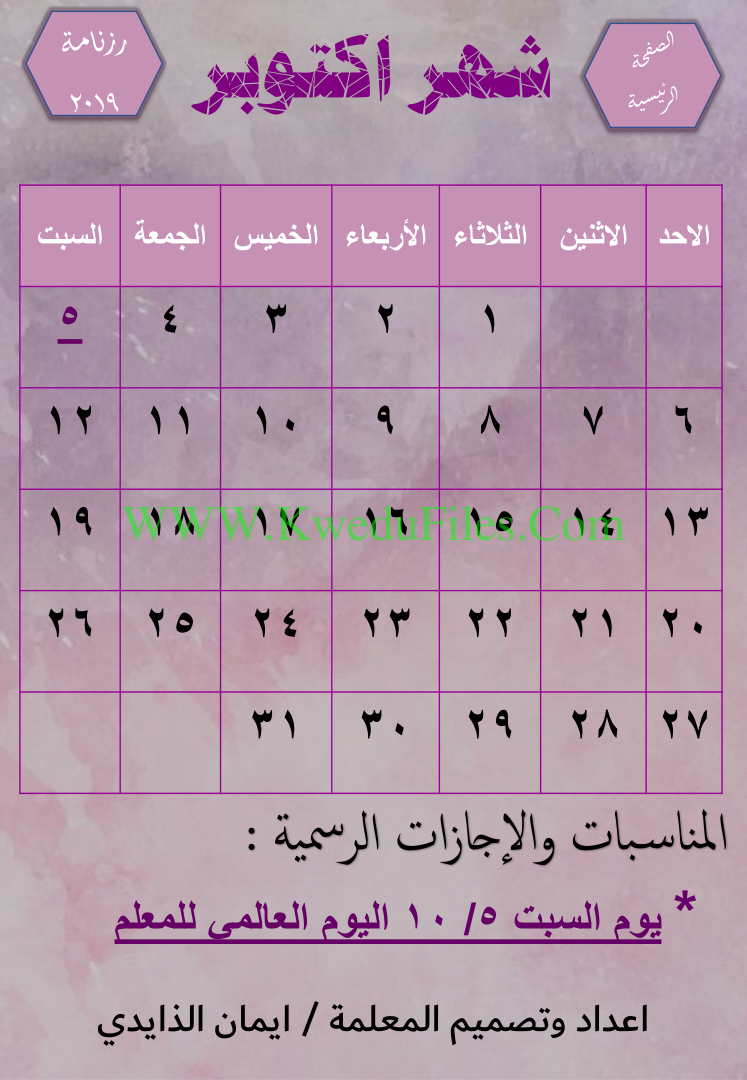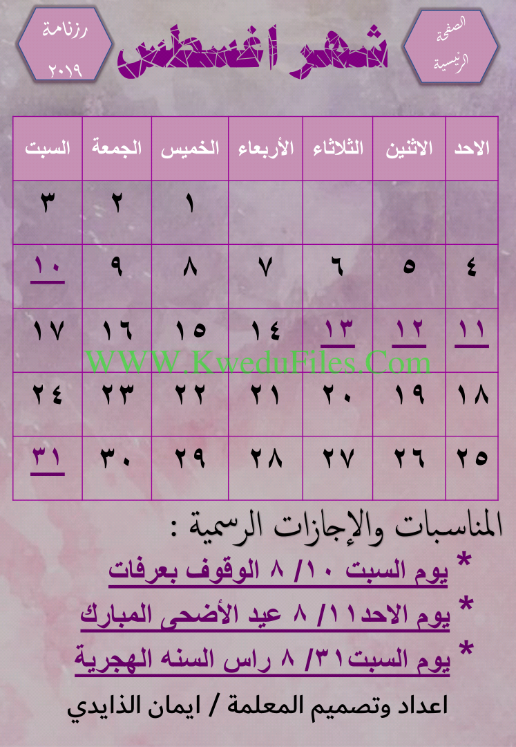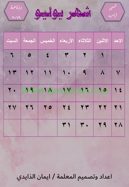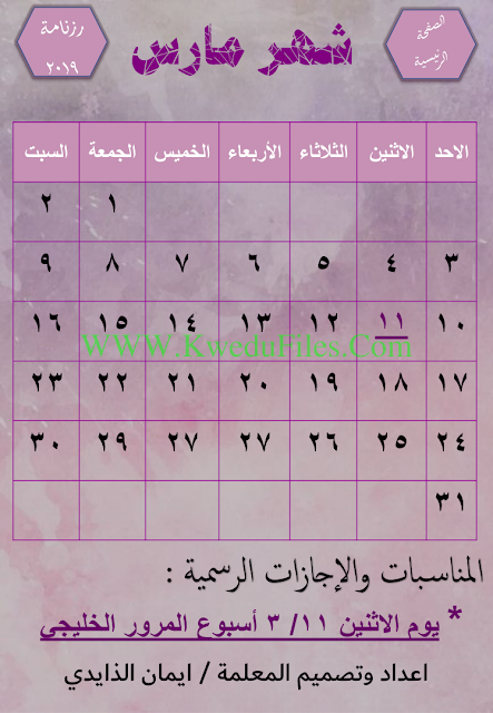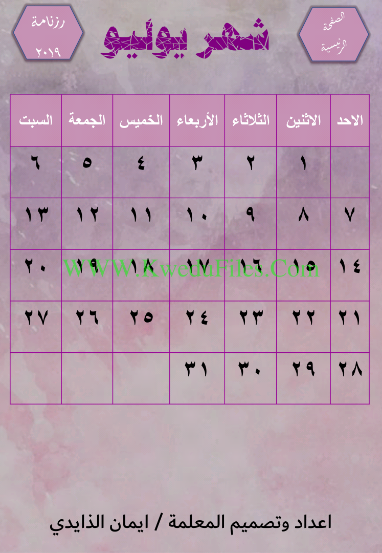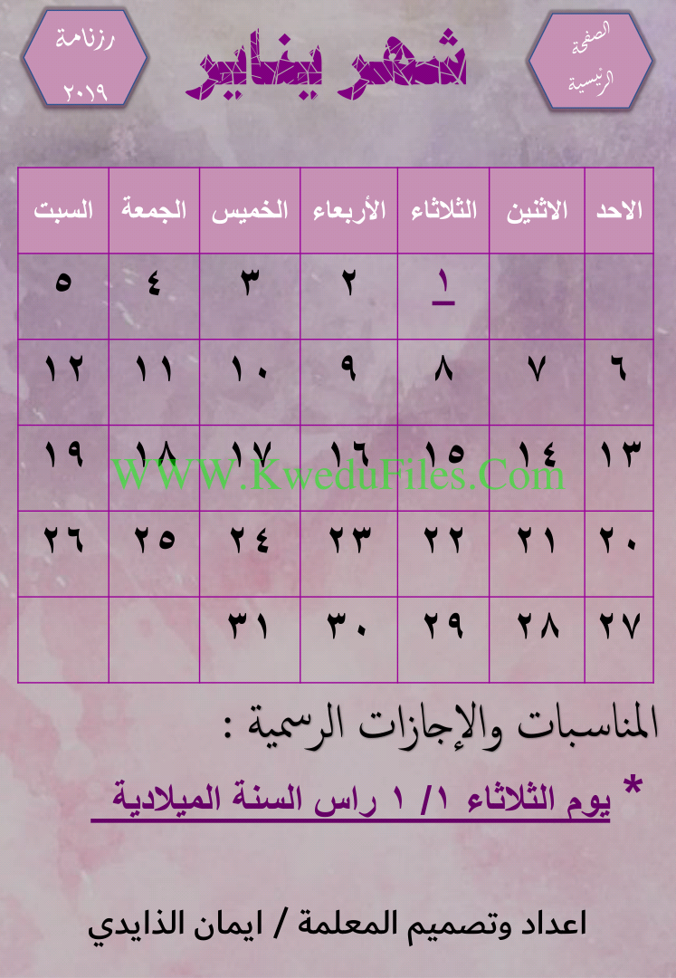 الرزنامة الالكترونية التفاعلية لعام 2019 اعداد وتصميم المعلمة ايمان الزايدي