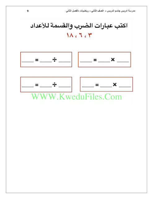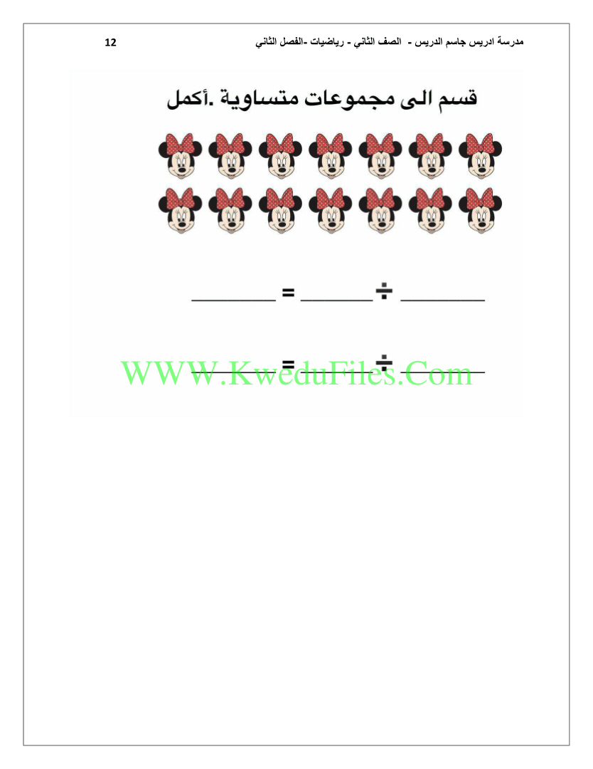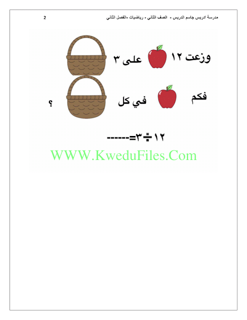 معلومات الملف: 12ورقة في مادة الرياضذات للصف الثاني للكورس الثاني تتضمن اوراق عمل رائعة | ||