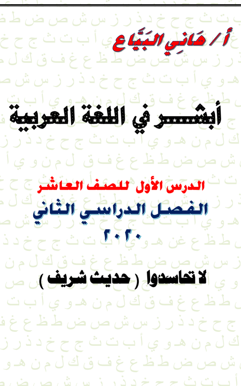 مذكرة درس لا تحسدوا للصف العاشر للكورس الثاني في 10اوراق من اعداد الاستاذ هاني البياع