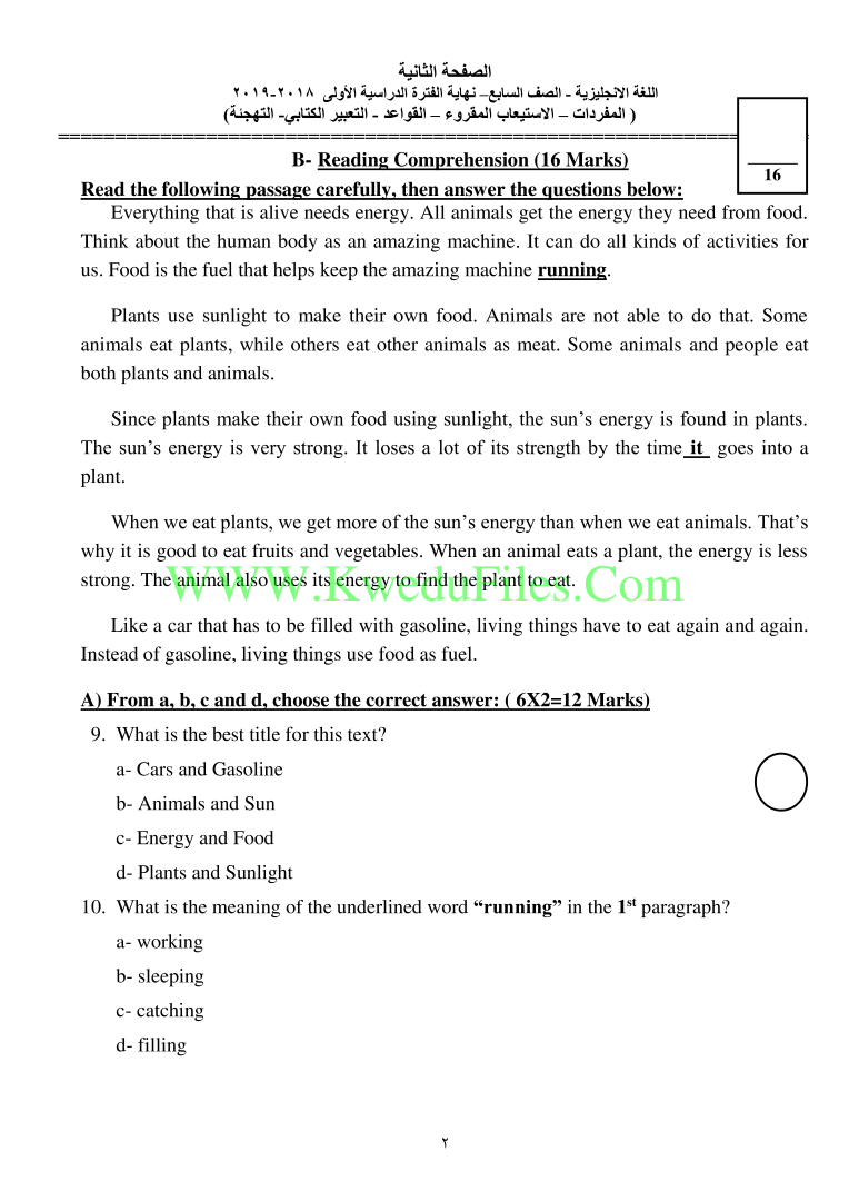 نموذج اختبار منطقة الجهراء 2018/2019للصف السابع للكورس الثاني عدد اوراق هذا الملف 46ورقة مع العلم ان صور الملف ادناه لاتحتوي الا على جزء من محتوى الملف الذي ستجده كاملا" عند تحميله