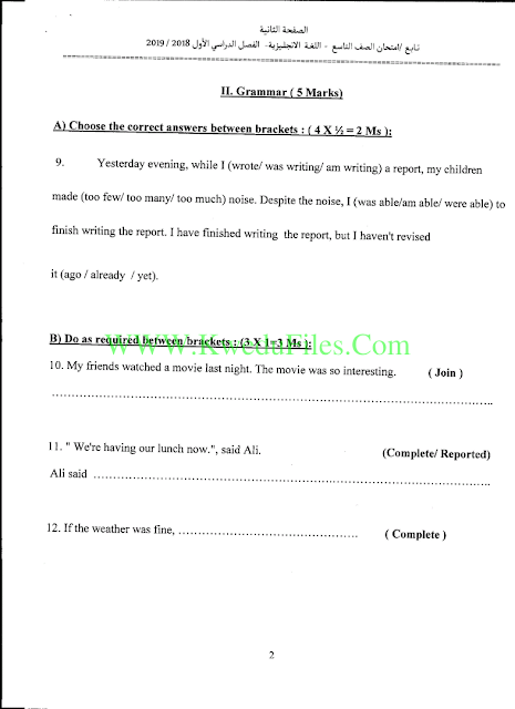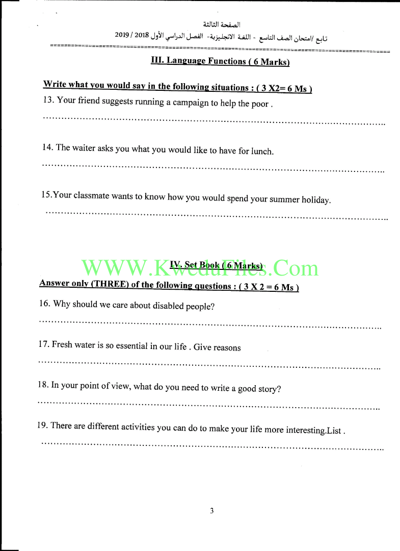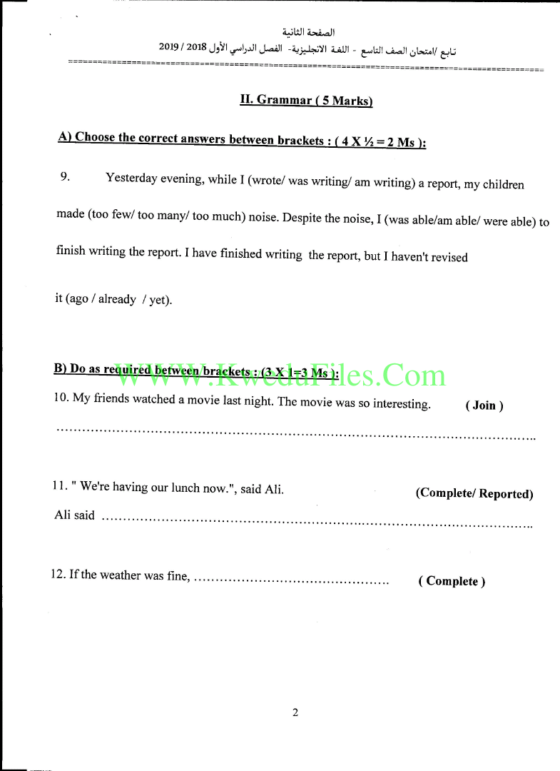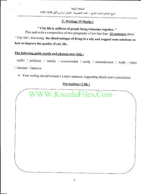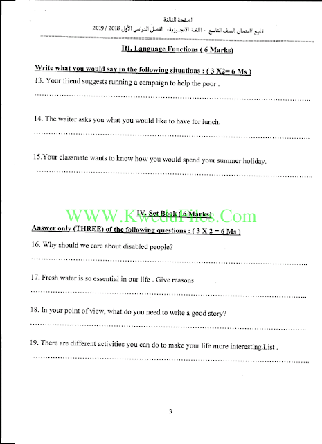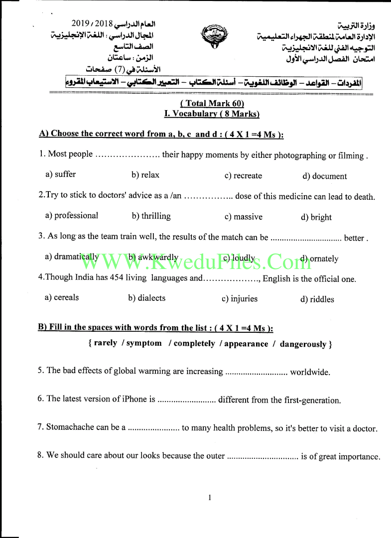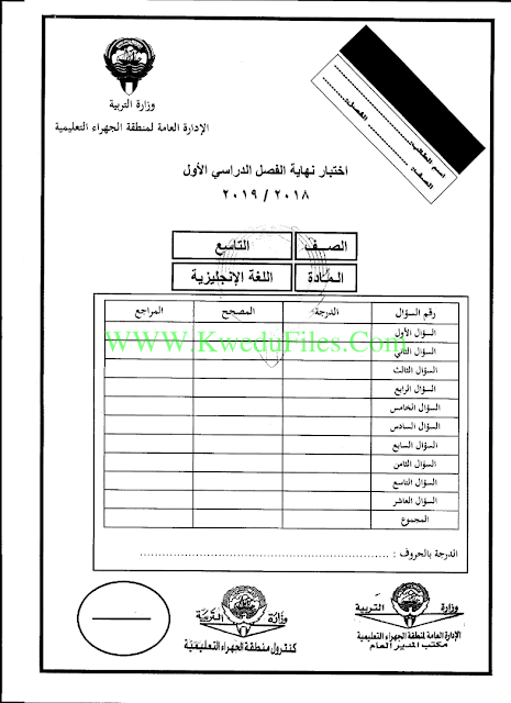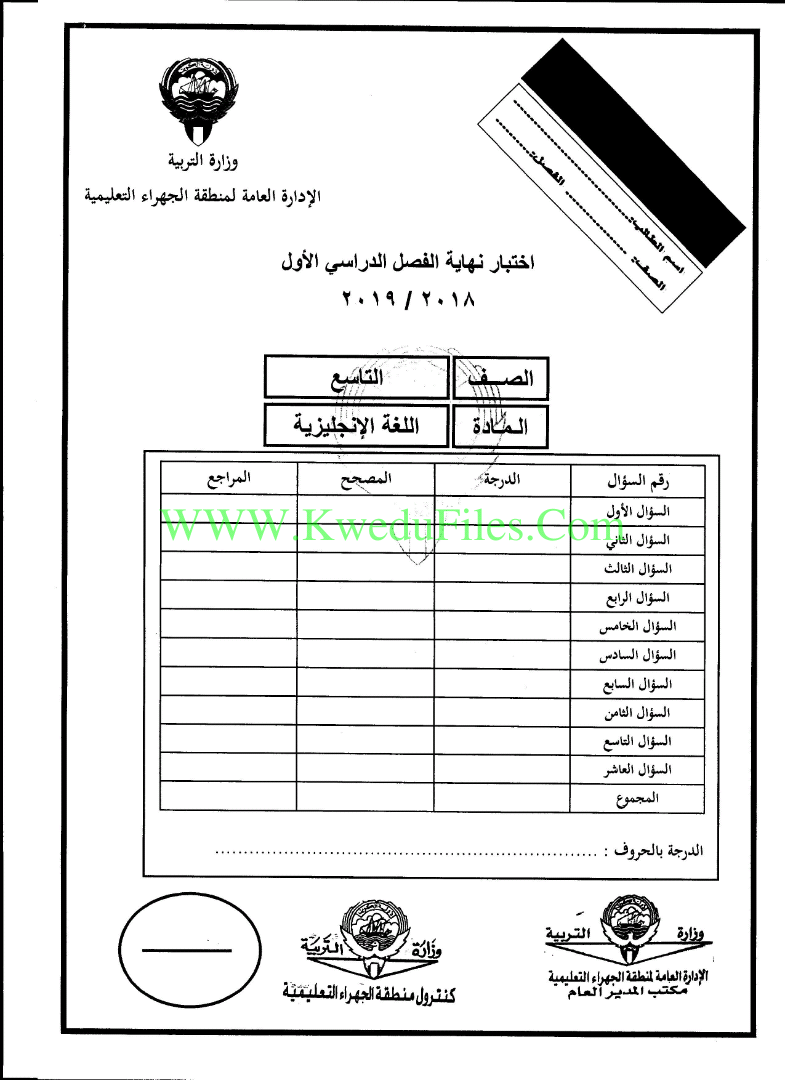أنت هنا: موقع المناهج ⇦ المناهج الكويتية ⇦ الصف التاسع ⇦ لغة انجليزية ⇦ الفصل الأول ⇦ الامتحان النهائي |