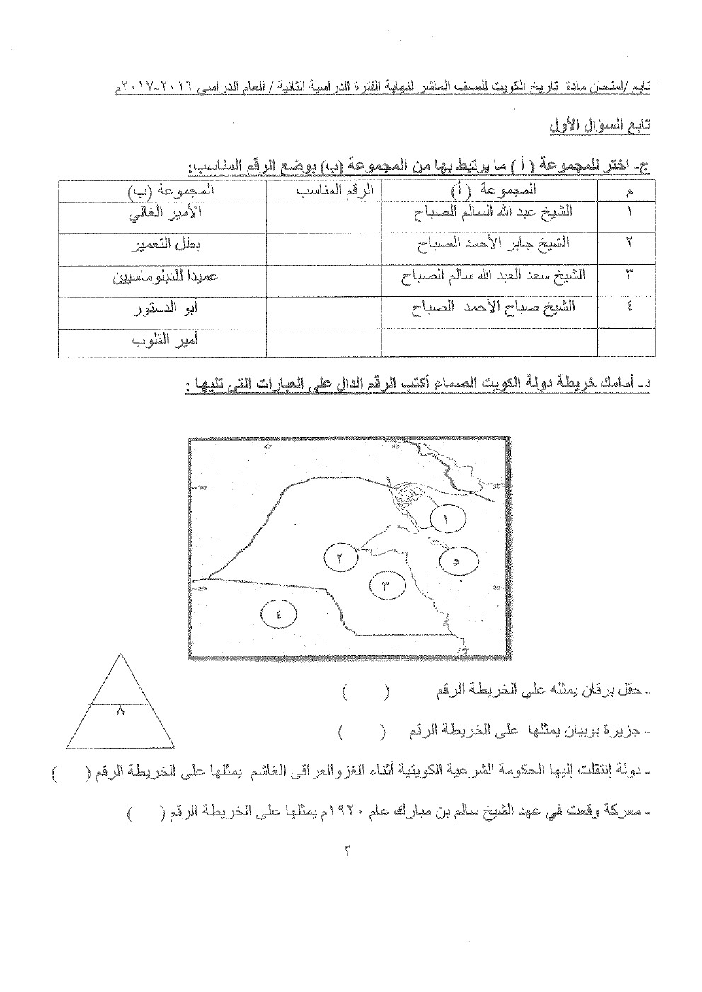 أنت هنا: موقع المناهجالمناهج الكويتية الصف العاشر تاريخ الفصل الثاني الامتحان النهائي