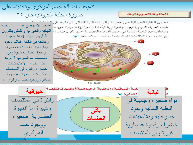 حل انشطة الكتاب والخلايا والانسجة في مادة العلوم للصف السابع للكورس الثاني عدد اوراق هذا الملف 63ورقة مع العلم ان صور الملف ادناه لاتحتوي الا على جزء من محتوى الملف الذي ستجده كاملا" عند تحميله