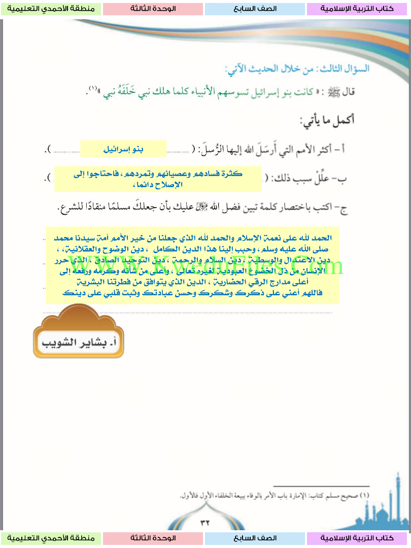 | أنت هنا: موقع المناهج ⇦ المناهج الكويتية ⇦ الصف السابع ⇦ تربية اسلامية ⇦ الفصل الثاني ⇦ حلول |