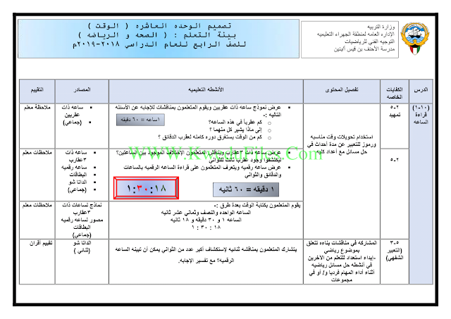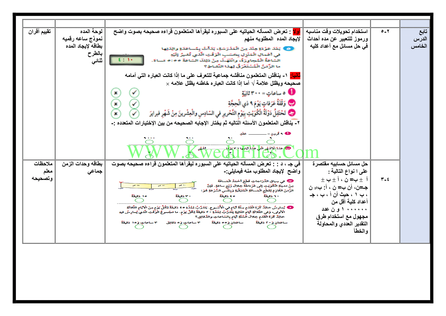 | الملاحظات المثبتة في المناهج الكويتية | |