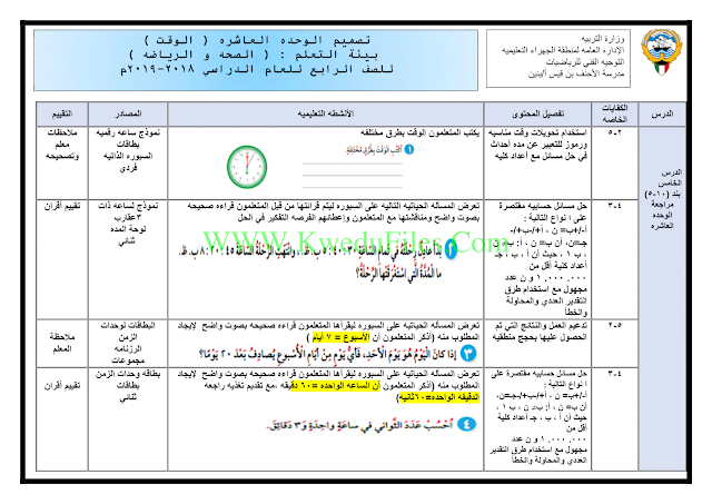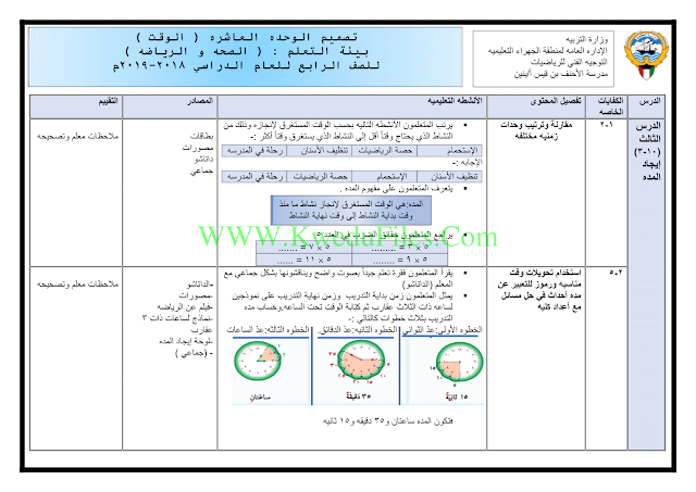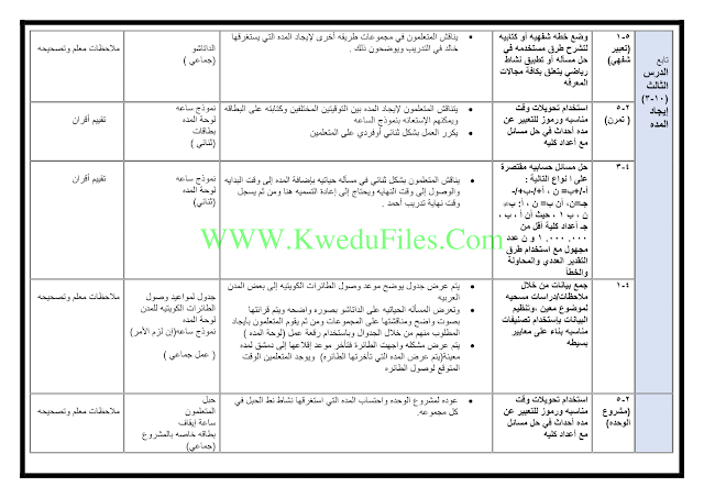 الملاحظات المثبتة في المناهج الكويتية