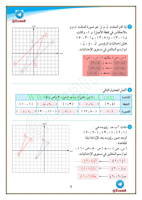 7اوراق في مادة الرياضيات للصف الثامن للكورس الثاني تتضمنمراجعةالوحدة الثامنة