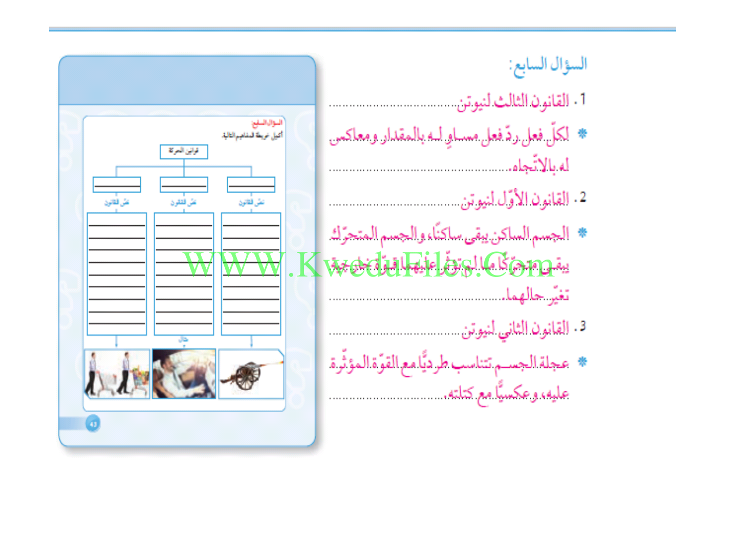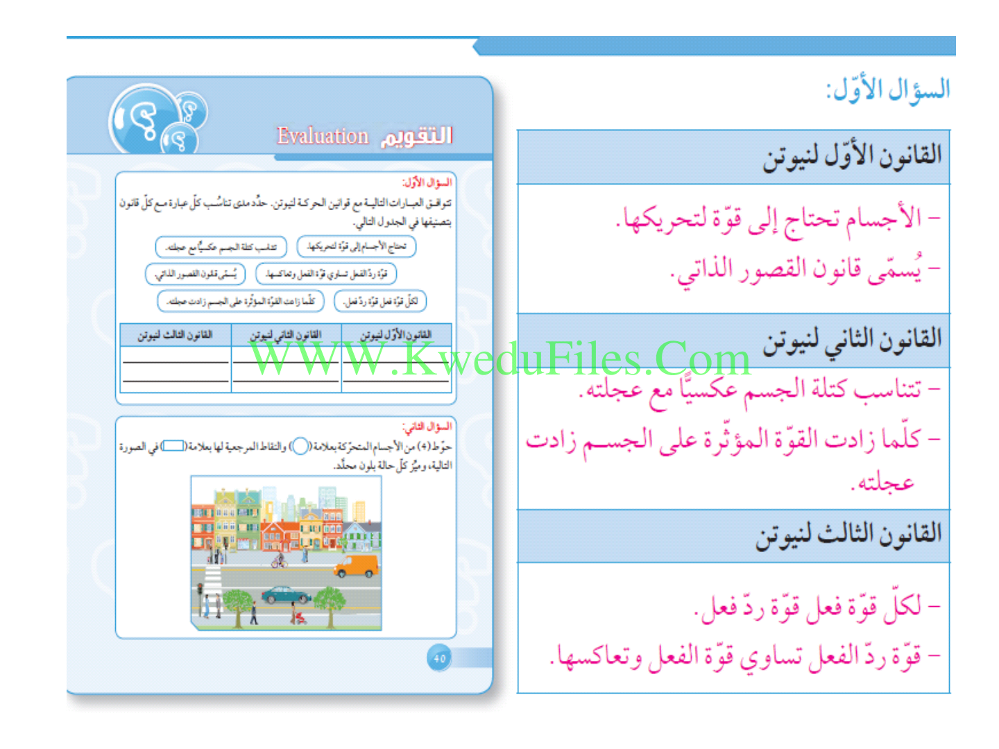 السابق: اوراق عمل على الوحدة الاولى (قوانين الحركة) الملف الحالي: 3564 التالي: مفردات الوحدة الأولى مع الترجمة