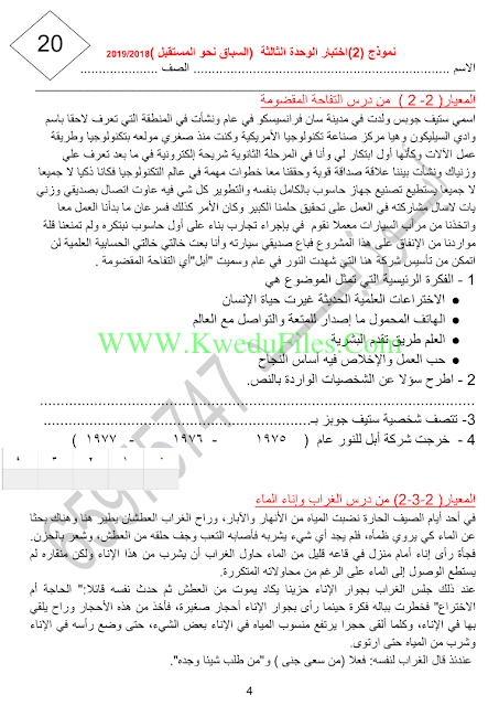 | نموذج اختبار ثاني (السباق نحو المستقبل) | ||