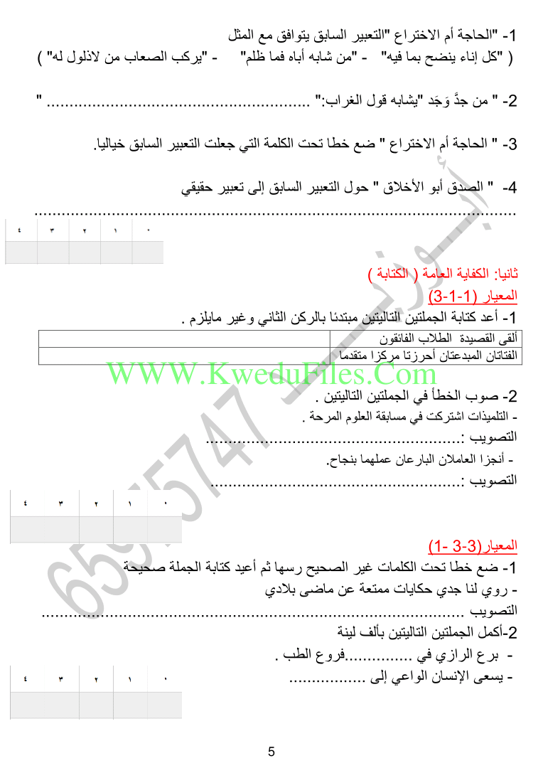 12. لغة عربية, الفصل الأول, 2025-2026, ورقة عمل على الاختبار التجريبي الأول