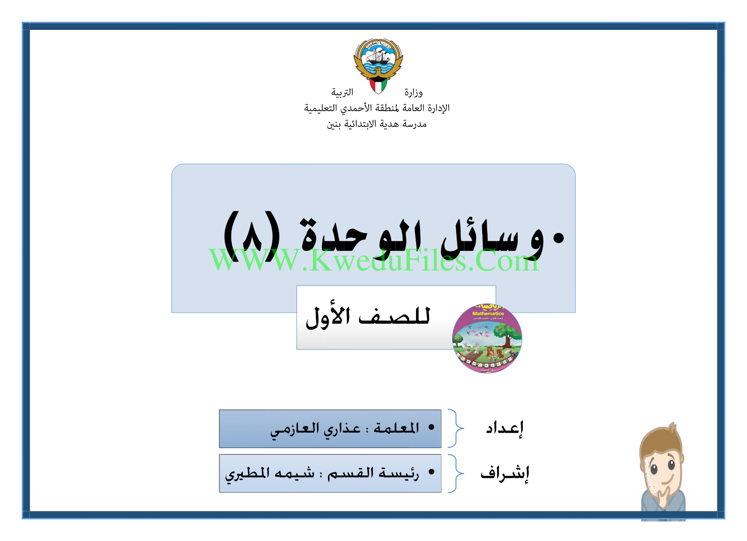 اليكم وسائل الوحدة الثامنة في مادة الرياضيات للصف الاول للكورس الثاني عدد اوراق هذا الملف 68ورقة مع العلم ان صور الملف ادناه لاتحتوي الا على جزء من محتوى الملف الذي ستجده كاملا" عند تحميله