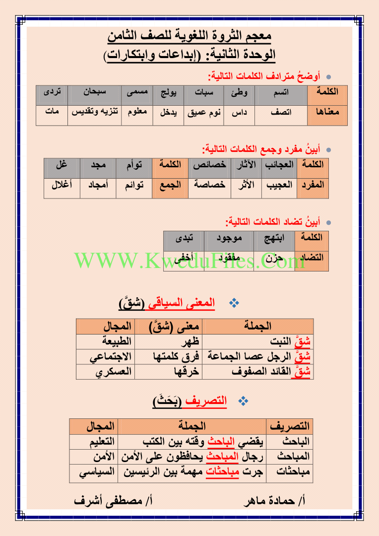7. الصف الحادي عشر, لغة عربية, توقعات العشماوي للفاينل