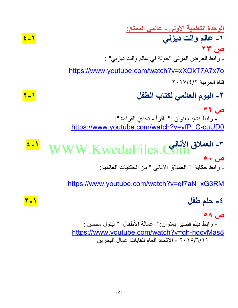 أحدث ملفات الصف الرابع, لغة عربية, الفصل الثاني