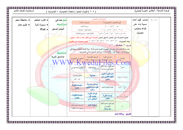 أنت هنا: موقع المناهج ⇦ المناهج الكويتية ⇦ الصف الثامن ⇦ رياضيات ⇦ الفصل الثاني ⇦ ملفات متنوعة |