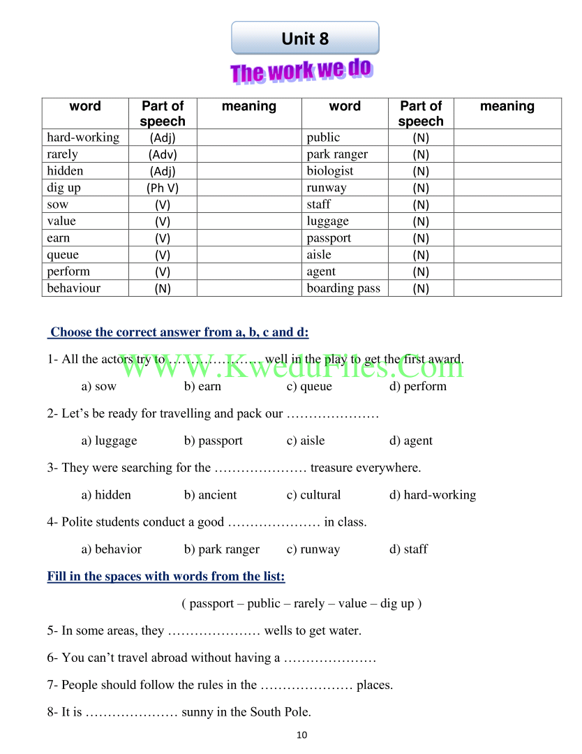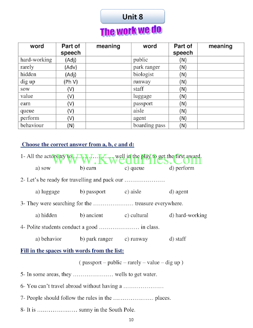 4. لغة انجليزية, الفصل الأول, 2025-2026, تدريبات على الوحدة الثانية في المفردات والقواعد والكتابة