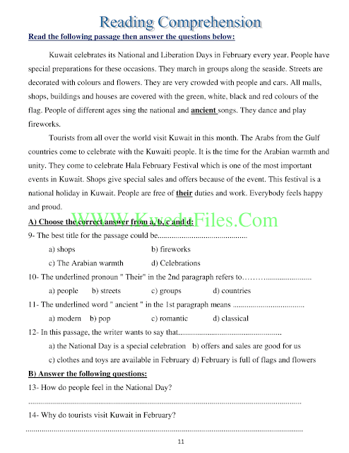 12. نموذج أسئلة منطقة الفروانية التعليمية