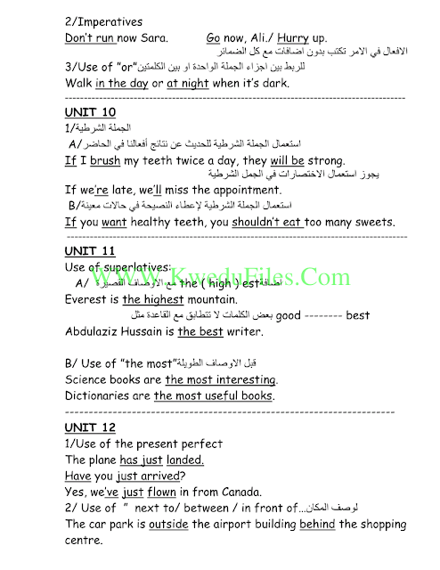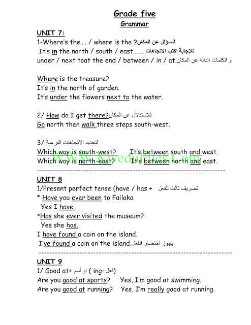 إليكم ورقتين تتضمن قواعد مهمة في مادة اللغة الانكليزية للصف الخامس للكورس الثاني