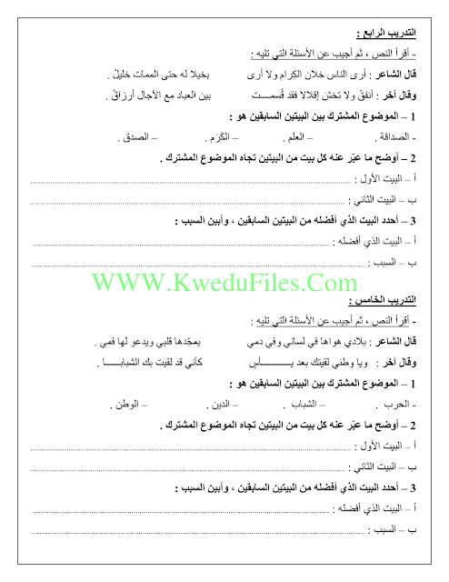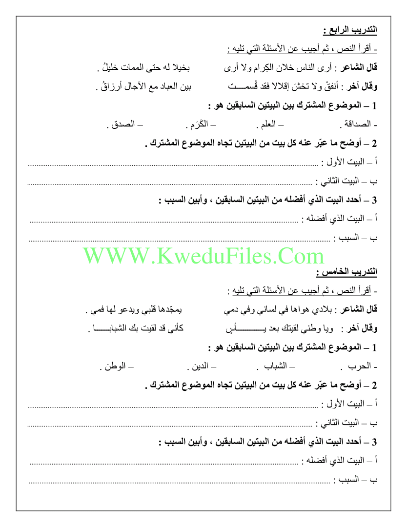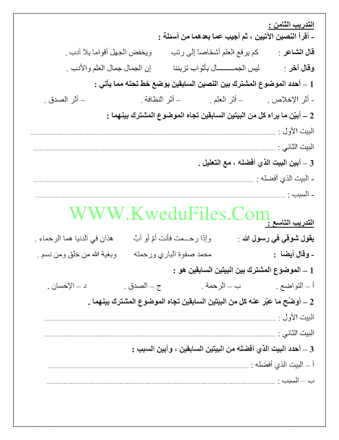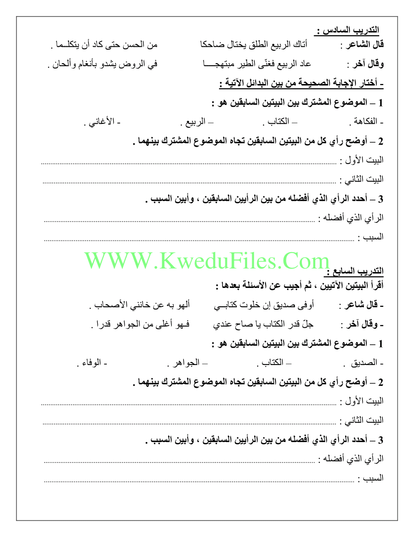 معلومات الملف: إليكم نماذج تدريبية للصف السادس للكورس الثاني في مادة اللغة العربية | ||