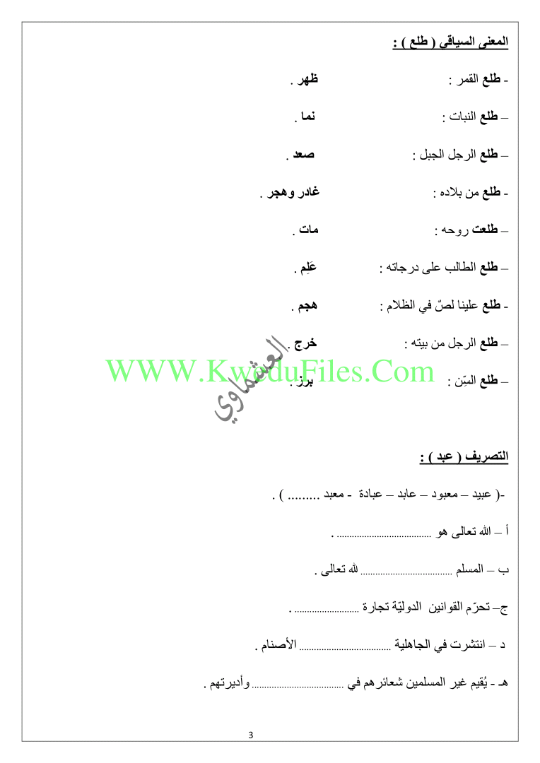 3. نموذج إجابة منطقة مبارك الكبير التعليمية