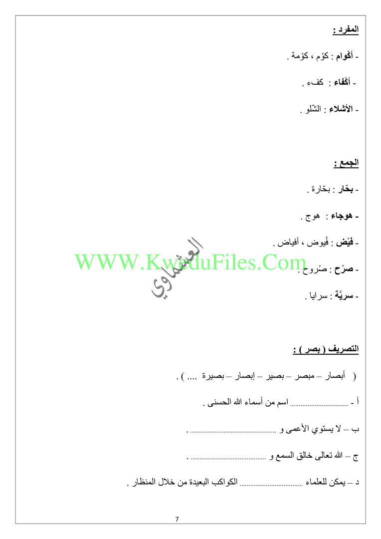 7. نموذج إجابة منطقة العاصمة التعليمية