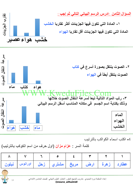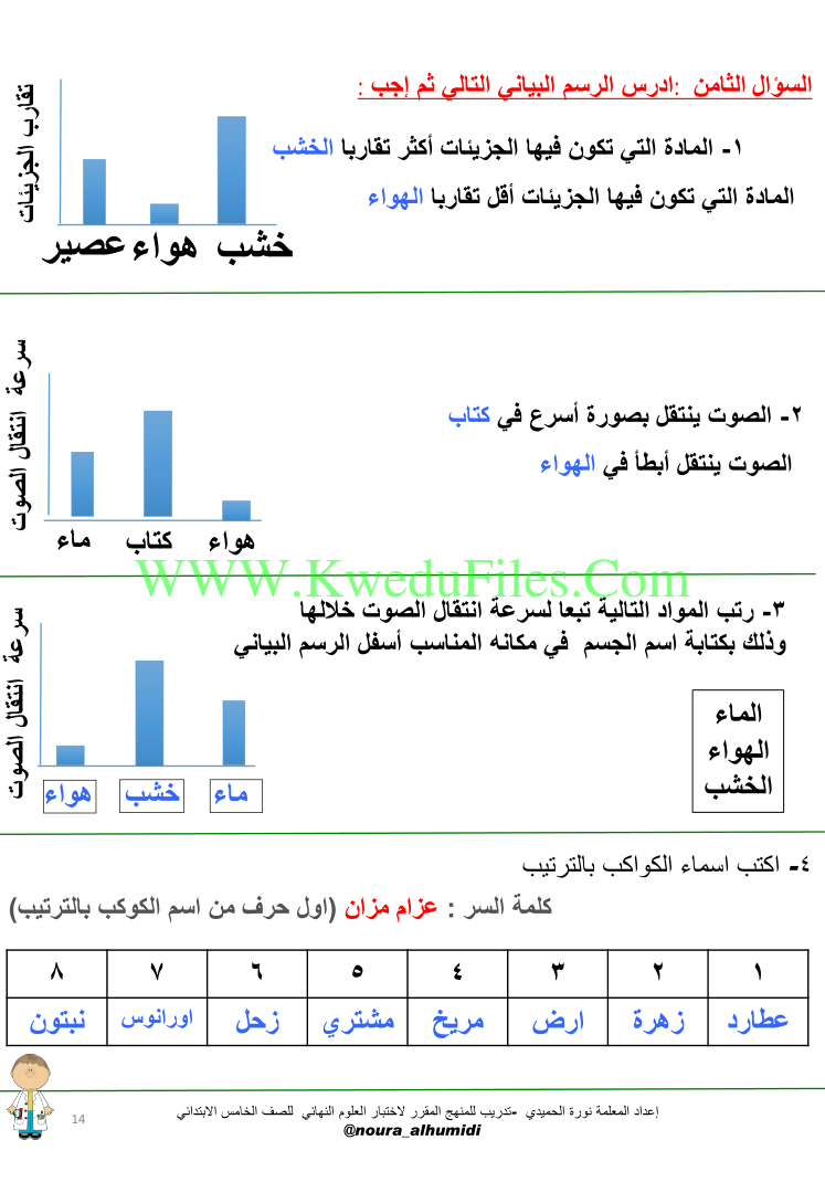 المذكرة الشاملة للأسئلة الموضوعية والمقالية لاختبار العلوم النهائي - إعداد: نورة الحميدي
