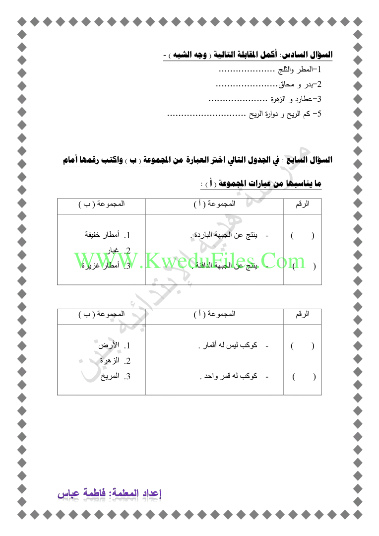 | مراجعة مدرسة هدية - إعداد: فاطمة عباس | ||