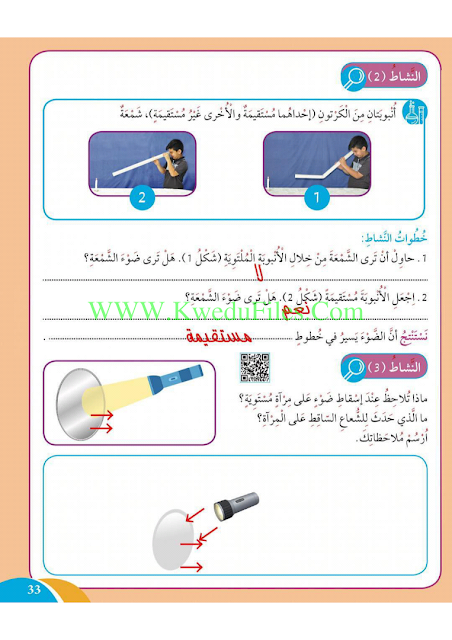 اليكم درس (ماالذي يحدث عند سقوط الضوء على الاجسام)للصف الرابع للكورس الثاني في مادة العلوم
