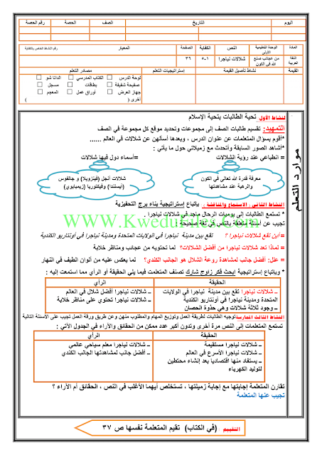 اليكم تحضير درس شلالات نياجرا في مادة اللغة العربية للصف الثامن للورس الثاني