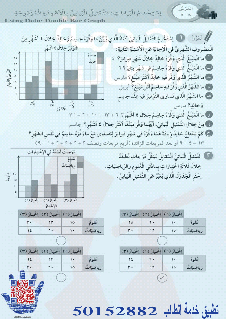 | 14. الصف الثامن, رياضيات, نماذج اختبارات تقويمية قبل 3 أيام | المشاهدات: 304