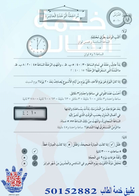 إليكممراجعةالوحدة العاشرة في مادة الرياضيات للصف الرابع للكورس الثاني