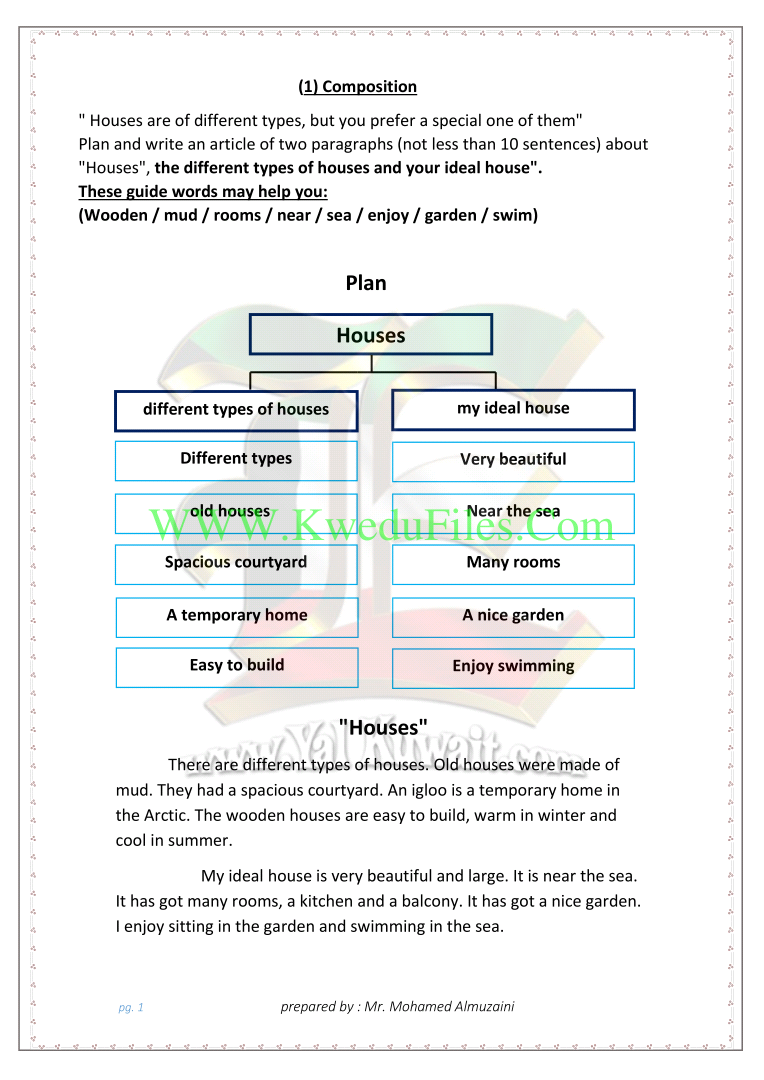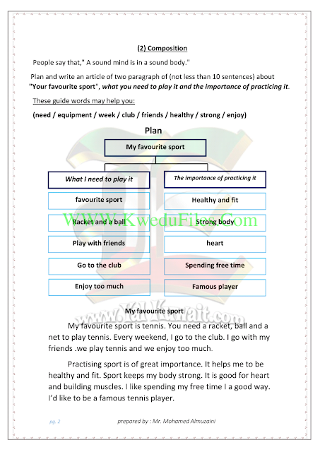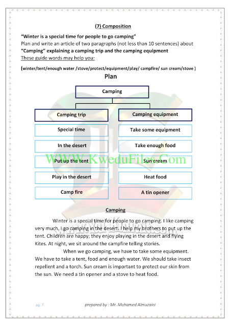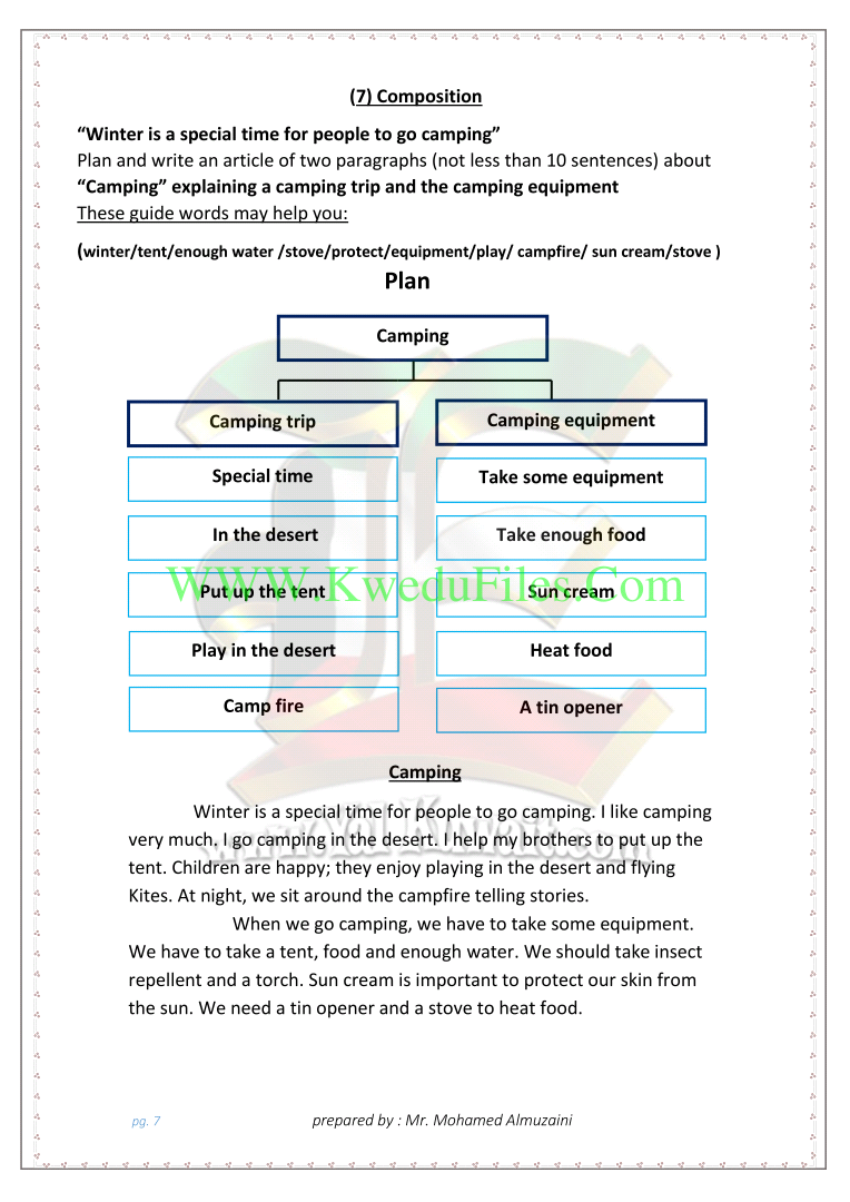 إليكممواضيعتعبير للتدريب للصف السابع للكورس الثاني