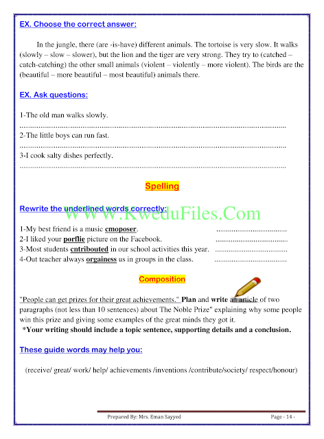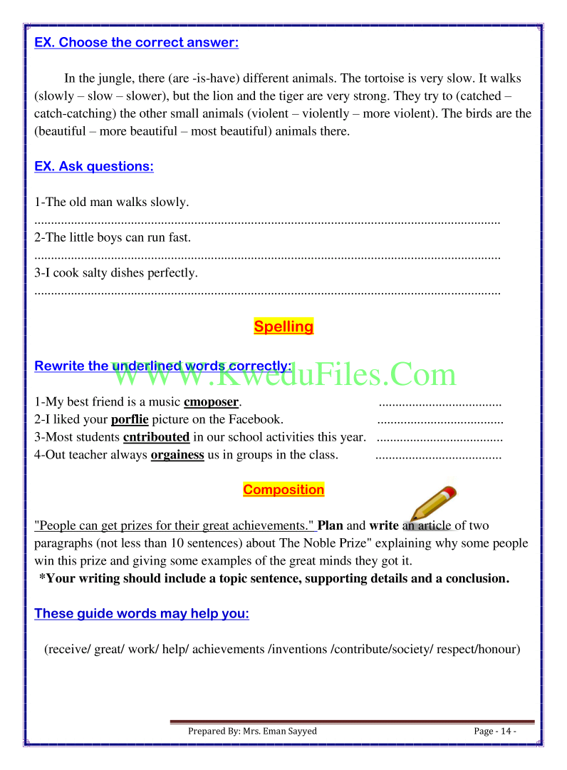 معلومات الملف: اليكم تدريبات مهمة في مادة اللغة الانكليزية للصف السابع للكورس الثاني | ||