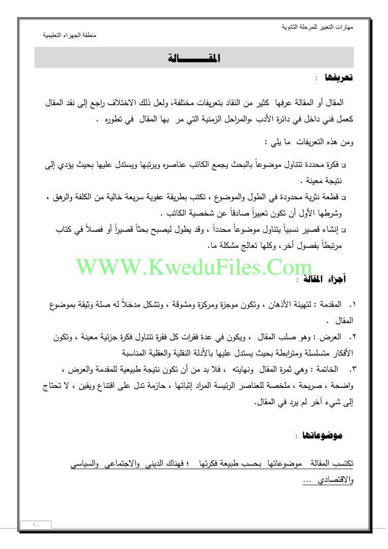 7. الصف التاسع, لغة عربية, أوراق تقويمية وتدريبية وتطبيقية ونماذج اختبارات قصيرة