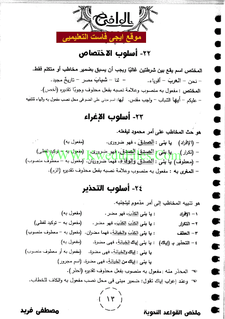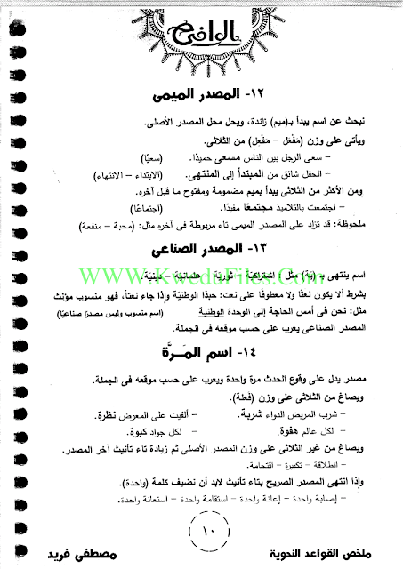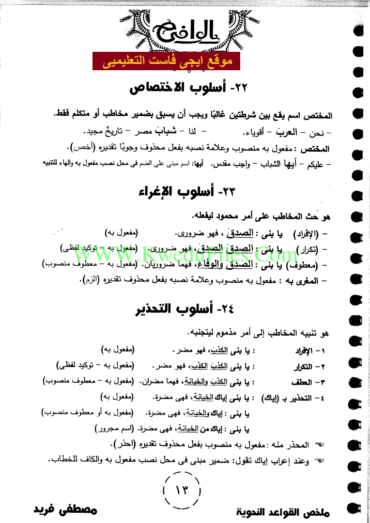 | ملخص قواعد النحو والبلاغة - إعداد: مصطفى فريد | ||