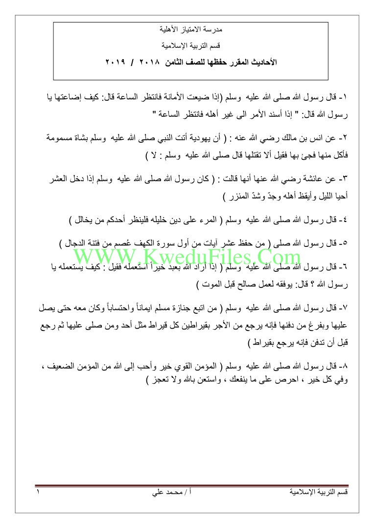 _اسلامية_مقرر_حفظ_الاحاديث_ومذكرة.pdf